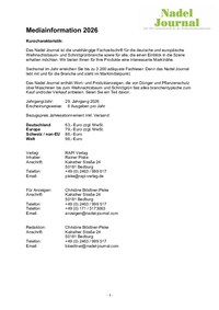 Sechsmal pro Jahr erreichen Sie bis 3.300 explizite Fachleser und mehr. Denn das Nadel Journal lebt mit und für die Branche und steht im Marktmittelpunkt. Wir wissen, wir kommen an. Das erreicht das Nadel Journal durch eine eindeutige journalistische Identität und durch eine unabhängige Berichterstattung mit Themen, die informieren, Typen, die interessieren und Trends, die inspirieren.