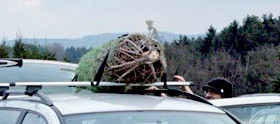 Transportiert man den Baum auf dem Autodach, sollte der Baum geschützt werden, indem man die Schnittstelle, am besten aber den ganzen Baum, mit Folie verpackt. Sonst lässt der eisige Fahrtwind den Baum vertrocknen, und die Zweige sowie Nadeln leiden.